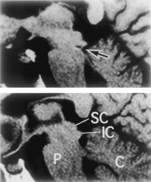 Figure 2 – Punctate hematoma of the inferior colliculi (bilateral),