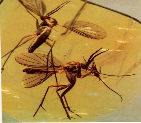 Close-up: well-preserved fungus gnats in amber