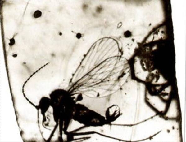 Sand fly caught in Lebanese amber some 120 million years ago.