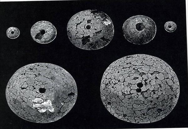 Corroded amber pearls from the ancient city of Mycenae in the Greek Peloponnesus.