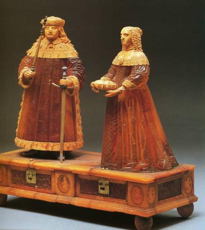 The Königsberg master Jacob Heise carved this two-drawer amber