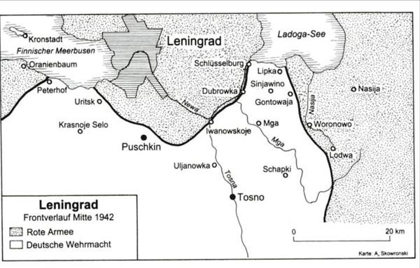 Map of the front line, here in 1942, where German and Soviet troops faced