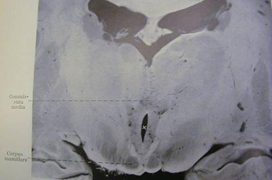 Figure 14 - From Kant (1933), showing the usual site of most severe damage in Wernicke's encephalopathy, the mammillary bodies (corpus mamillare).